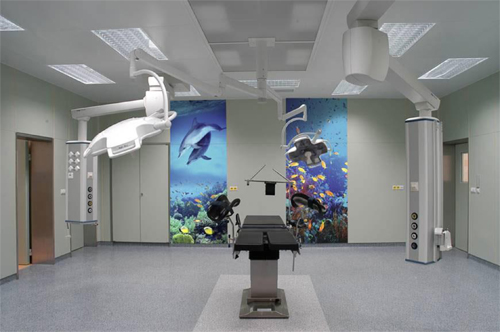 This modular wall system serves as a prefabricated operating room solution.