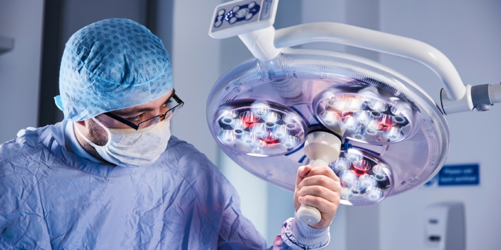 4. Adjust the OT light to point at the surgical site, depending on the type of surgery.